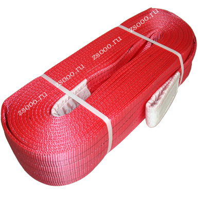 Стропы текстильные петлевые СТП грузоподъёмностью 5 тонн изготовлены из плоской полиэстровой ленты красного цвета. Петли с защитными чехлами. Коэффициент прочности — 7:1. Длина стропа 15 метров.